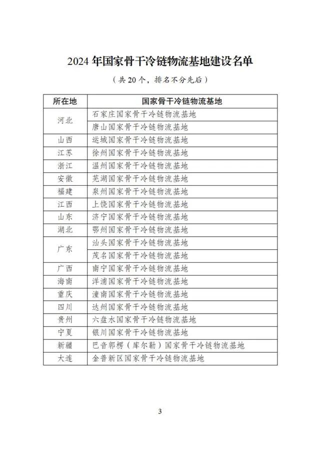 國家發(fā)展改革委發(fā)布2024年國家骨干冷鏈物流基地建設(shè)名單
